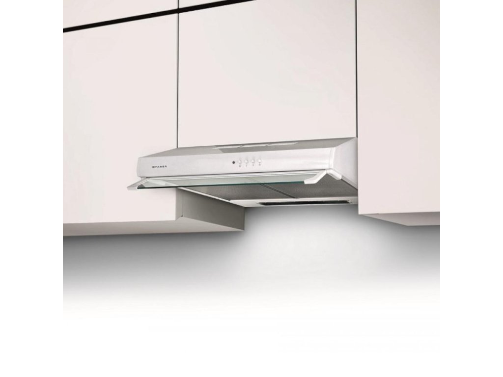 Nenáročná montáž, úspora místa ve skříňce a provedení v bílé barvě, která bude ladit se všemi ostatními barvami v kuchyni, z něj dělají ideální digestoř do menších kuchyní.