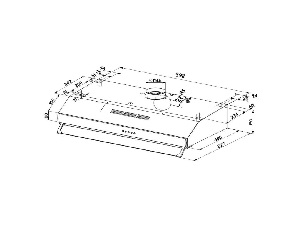 Ovládání je tlačítkové, skleněné výklopné čílko zvětšuje sací plochu digestoře. Odtahové potrubí můžete napojit z horní i ze zadní části digestoře, přesně tak, jak vám bude vyhovovat. Při provozu na recirkulaci je třeba k digestoři přikoupit 2 ks uhlíkových filtrů F1.