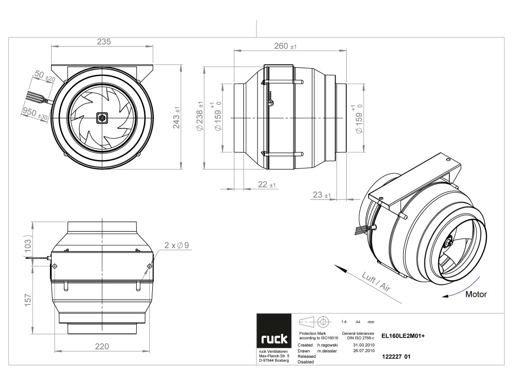 Ventilátory Ruck Etaline jsou dostupné ve variantách pro 230 V (jednofázové napájení) i 400 V (třífázové napájení).