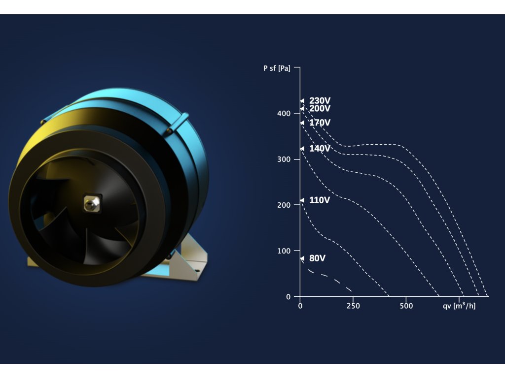 - EC motor (elektronicky komutovaný) – až o 50 % úspornější, tišší a s možností plynulé regulace výkonu (0–10 V). Vhodný pro trvalý provoz a systémy s požadavkem na nízkou hlučnost.