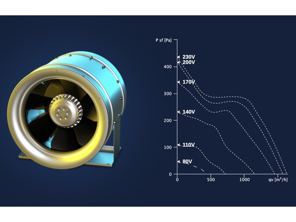 - EC motor (elektronicky komutovaný) – až o 50 % úspornější, tišší a s možností plynulé regulace výkonu (0–10 V). Vhodný pro trvalý provoz a systémy s požadavkem na nízkou hlučnost.