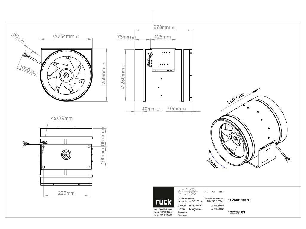 Ventilátory Ruck Etaline jsou dostupné ve variantách pro 230 V (jednofázové napájení) i 400 V (třífázové napájení).