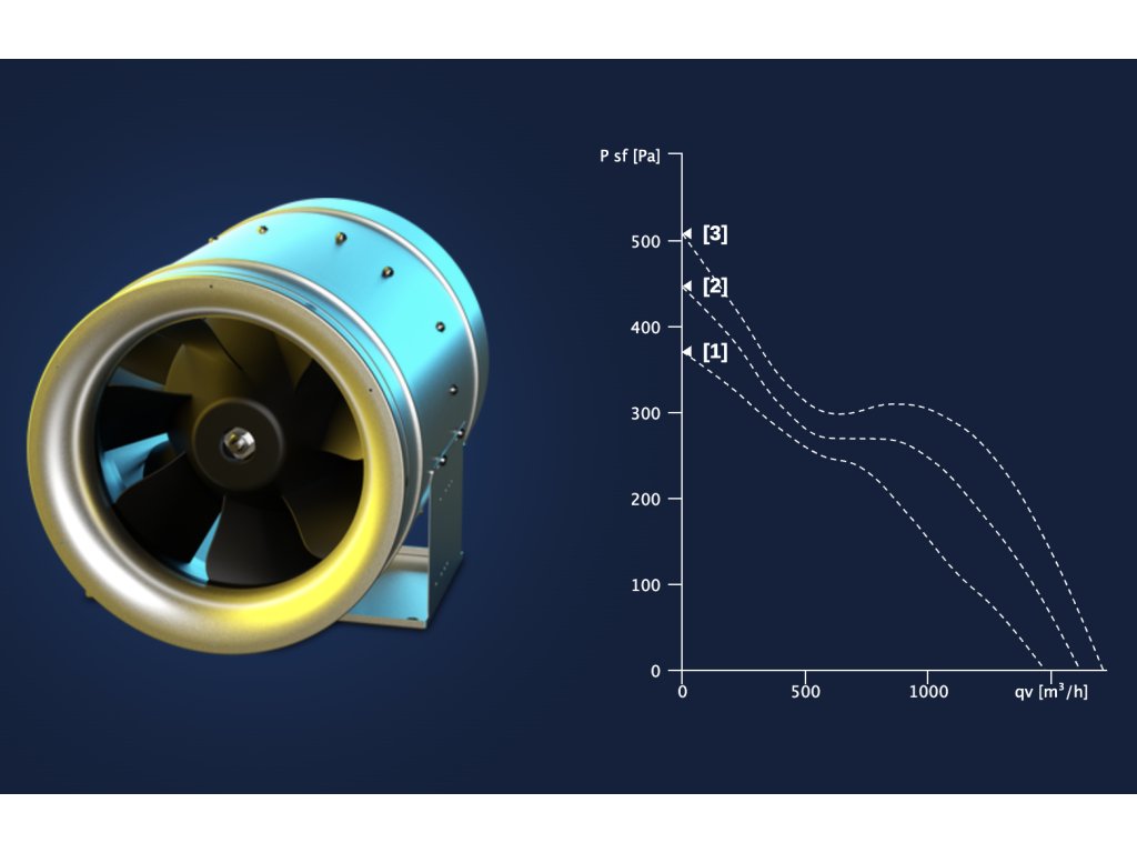 - EC motor (elektronicky komutovaný) – až o 50 % úspornější, tišší a s možností plynulé regulace výkonu (0–10 V). Vhodný pro trvalý provoz a systémy s požadavkem na nízkou hlučnost.