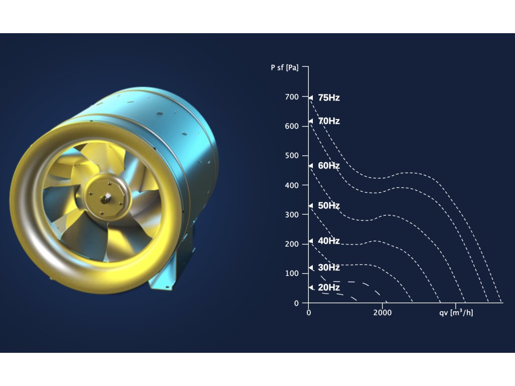 - EC motor (elektronicky komutovaný) – až o 50 % úspornější, tišší a s možností plynulé regulace výkonu (0–10 V). Vhodný pro trvalý provoz a systémy s požadavkem na nízkou hlučnost.