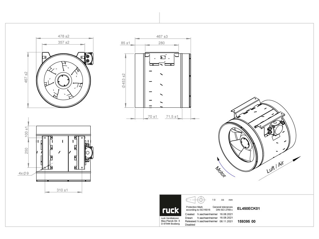 Ventilátory Ruck Etaline jsou dostupné ve variantách pro 230 V (jednofázové napájení) i 400 V (třífázové napájení).