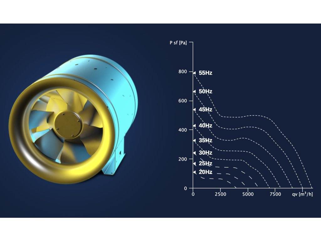 - EC motor (elektronicky komutovaný) – až o 50 % úspornější, tišší a s možností plynulé regulace výkonu (0–10 V). Vhodný pro trvalý provoz a systémy s požadavkem na nízkou hlučnost.