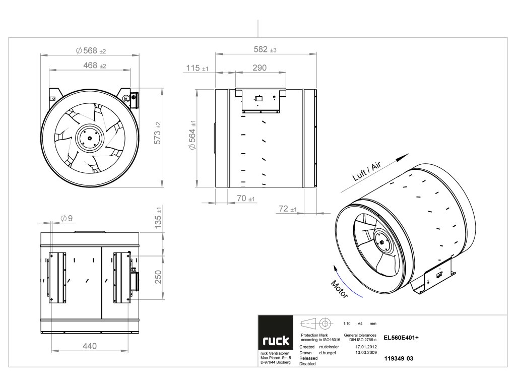 Ventilátory Ruck Etaline jsou dostupné ve variantách pro 230 V (jednofázové napájení) i 400 V (třífázové napájení).