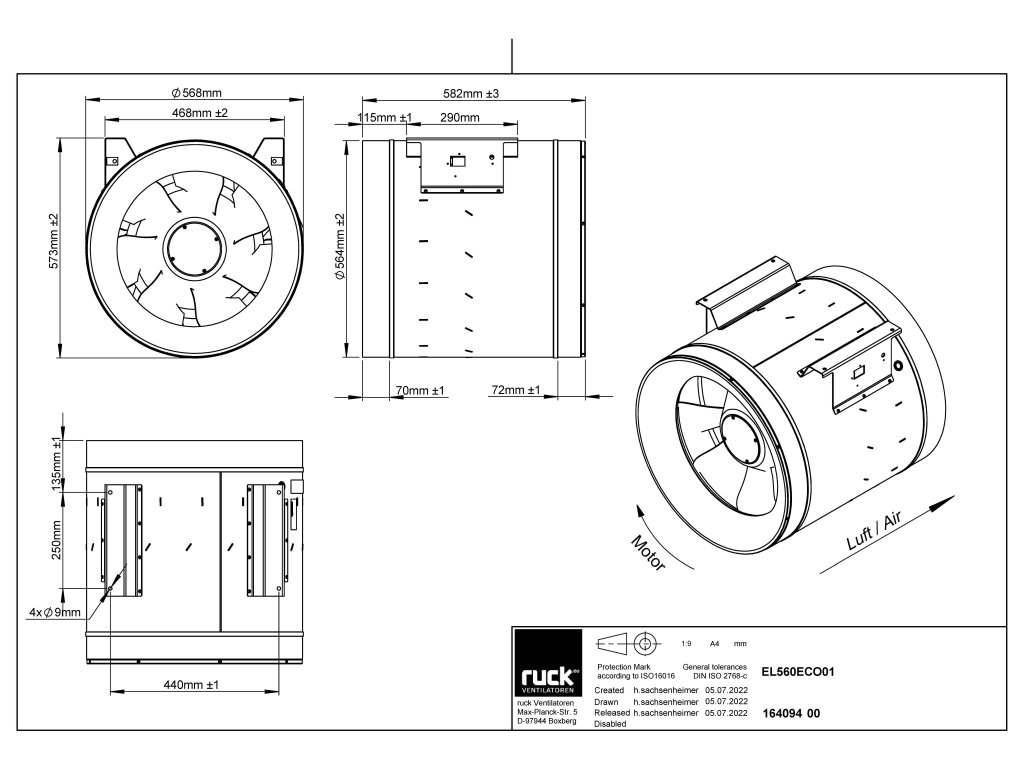 Ventilátory Ruck Etaline jsou dostupné ve variantách pro 230 V (jednofázové napájení) i 400 V (třífázové napájení).