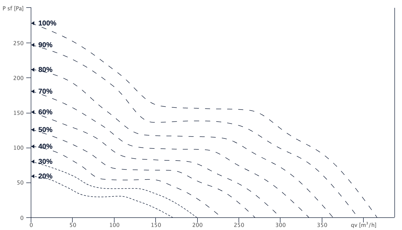 – ventilátor běží stále na plný výkon, je ideální pro aplikace, kde není potřeba měnit průtok vzduchu.