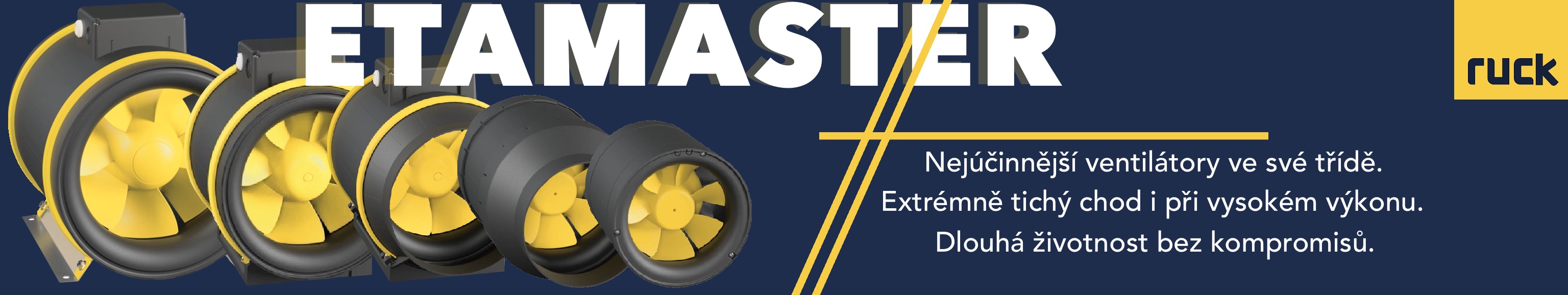 Řada Ruck Etamaster zahrnuje široké spektrum výkonů i průměrů potrubí od 100 do 400 mm. Díky diagonální konstrukci nabízí vysoký tlak vzduchu i při delším potrubí, a proto se skvěle hodí jak pro menší koupelny, tak pro rozsáhlé ventilační rozvody v průmyslu nebo komerčních budovách.