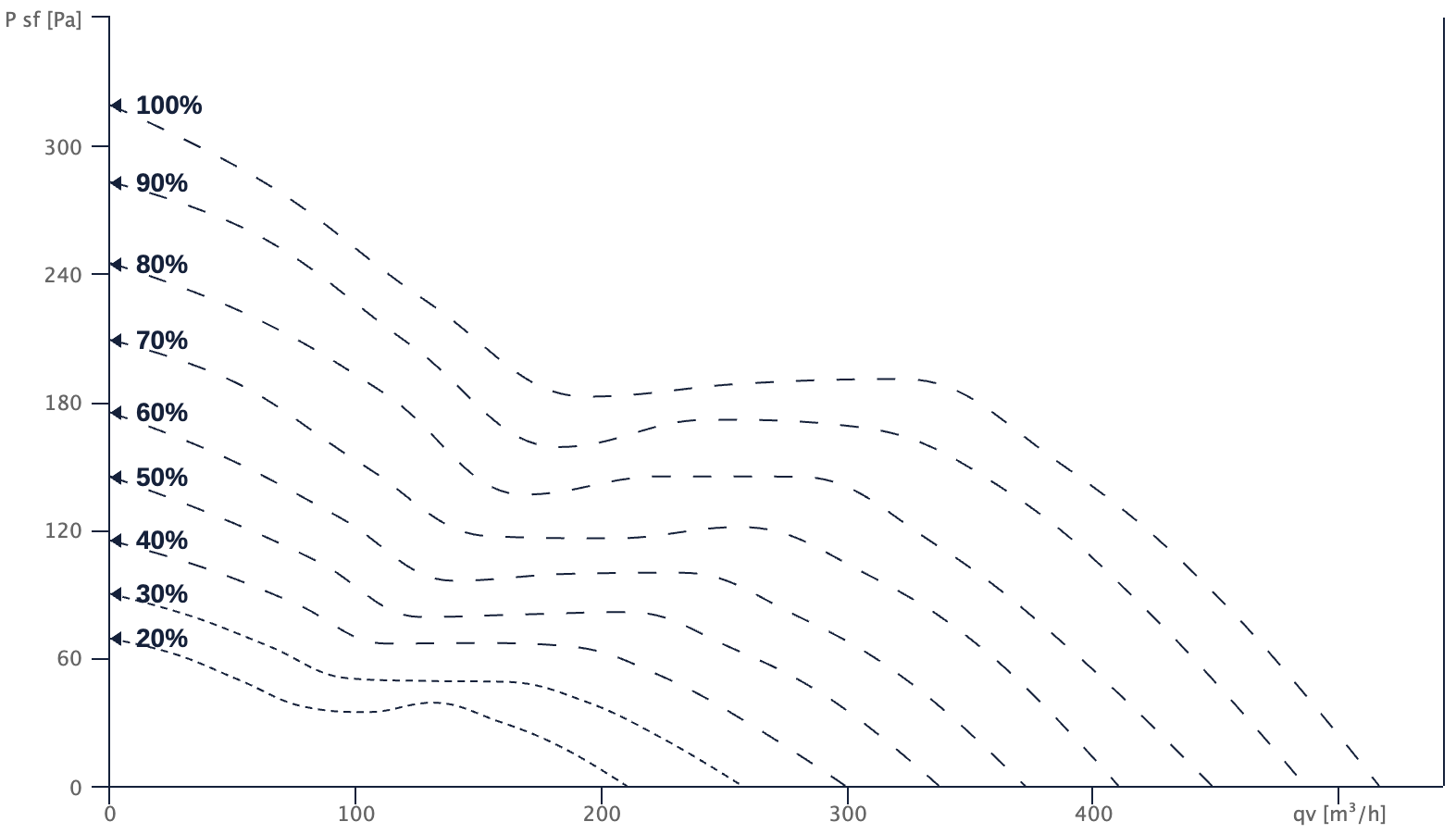 – ventilátor běží stále na plný výkon, je ideální pro aplikace, kde není potřeba měnit průtok vzduchu.