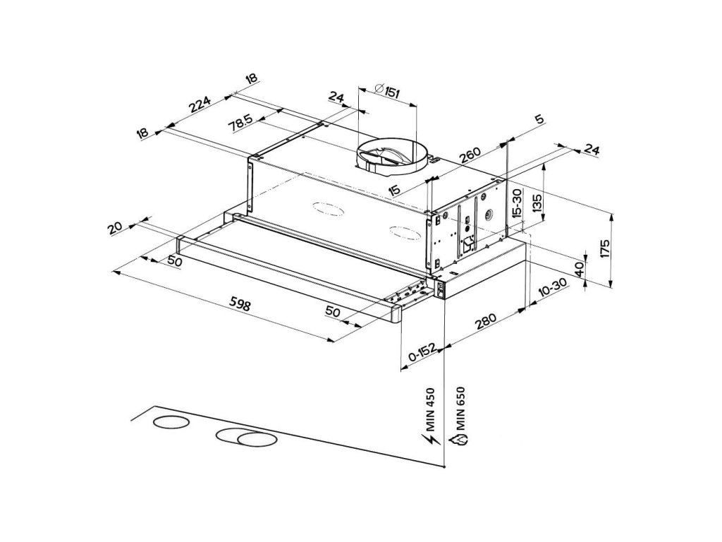 FLEXA LUX GLASS NG A60 Vestavná výsuvná digestoř