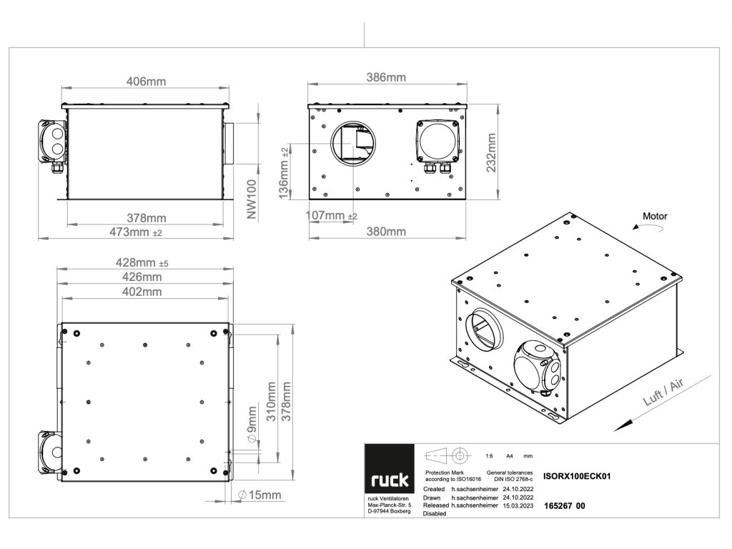 - Možnost rozšíření o příslušenství: zpětné klapky, tlumiče hluku, filtrační a ohřevné/chladicí boxy (standardní příslušenství Ruck)