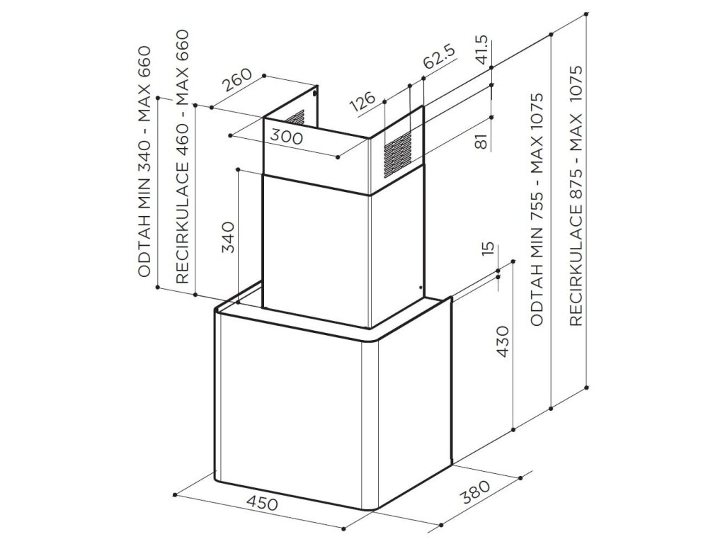 Lze ji také propojit s externím motorem na fasádu MISTRAL. V tomto případě jsou technické parametry digestoře shodné s parametry externí ventilační jednotky.