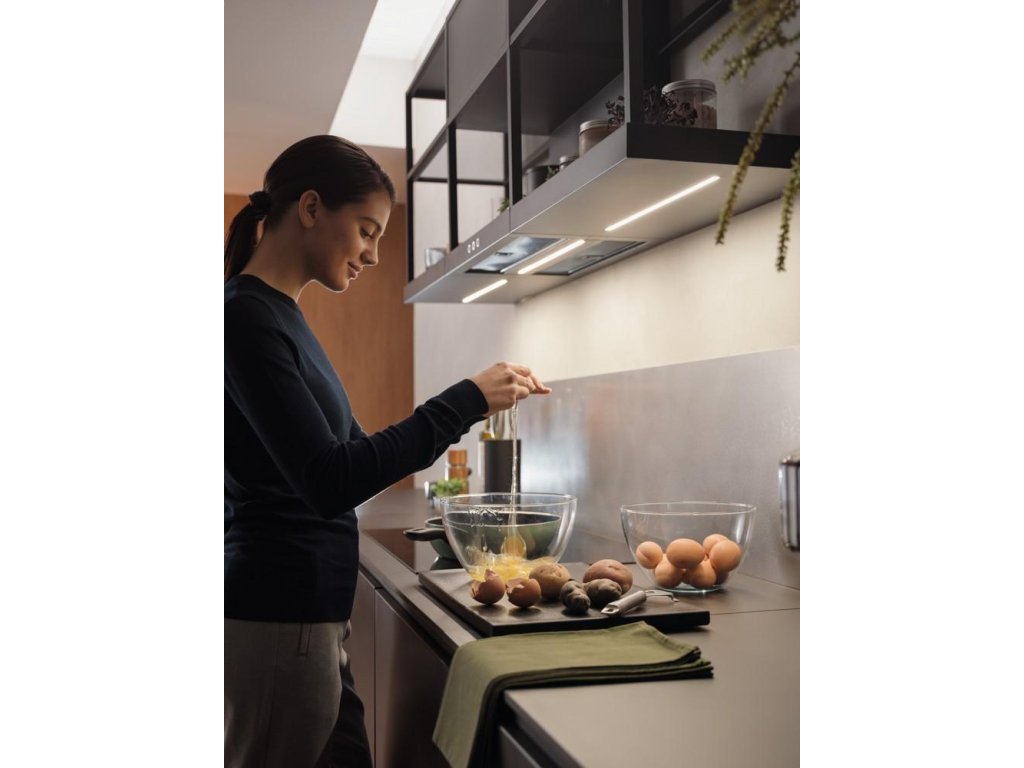 Digestoři MODULAR dominuje sofistikovaný zapuštěný Led pásek, který zajistí dobré osvětlení vaší varné desky.