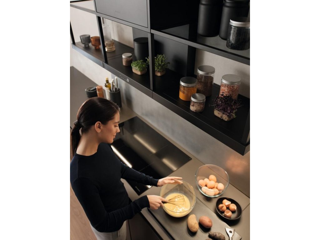 Výhodou tohoto modelu je možnost využití prostoru přímo nad digestoří, kde standardně bývá umístěn motor. Motorová jednotka je diskrétně ukryta v horní části digestoře, v místě, které již nebývá příliš využíváno a zajišťuje tak čistý a stylový vzhled.