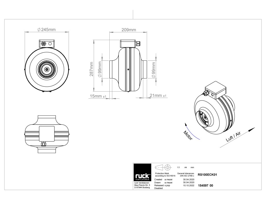 Řada potrubních radiálních ventilátorů Ruck RS EC představuje výkonné a přitom úsporné radiální potrubní ventilátory s moderní EC technologií. Díky kompaktní konstrukci, zpětně zahnutým lopatkám a plynule regulovatelnému motoru poskytují spolehlivý výkon i při vyšších tlakových ztrátách v systému.