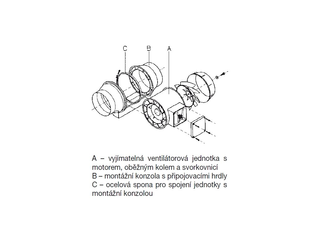 Montáž ventilátorů je možná v každé poloze ventilátoru. Skříň nesmí přenášet mechanické namáhání z potrubních rozvodů.