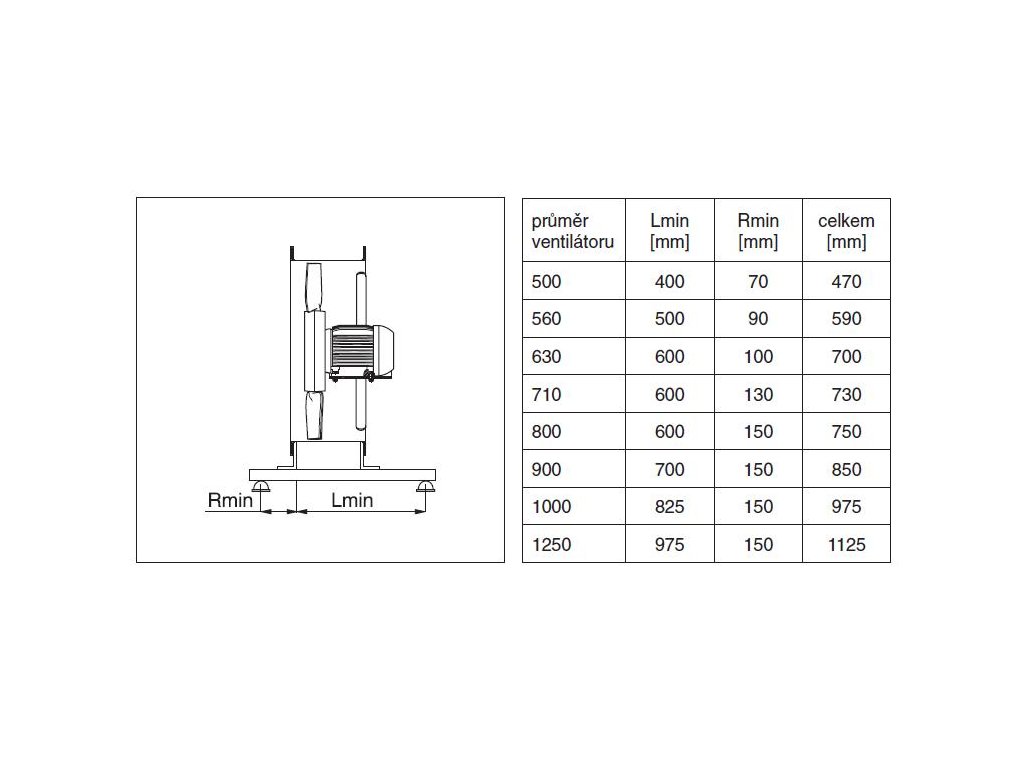 ventilátorů v každé poloze, přednostně s osou motoru vodorovně. Skříň nesmí přenášet mechanické namáhání z potrubních rozvodů.