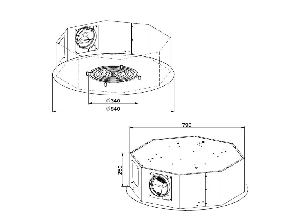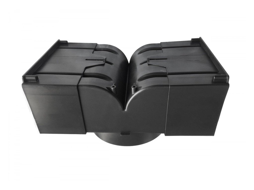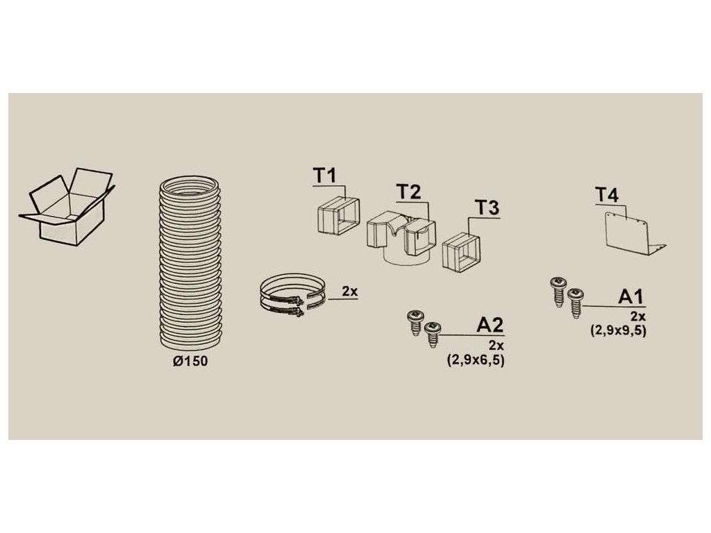 Rozbočovač, který nasměruje nasátý vzduch do mřížek při recirkulačním provozu, je určen pro digestoře TSPG GLASS, VRT, TSP.