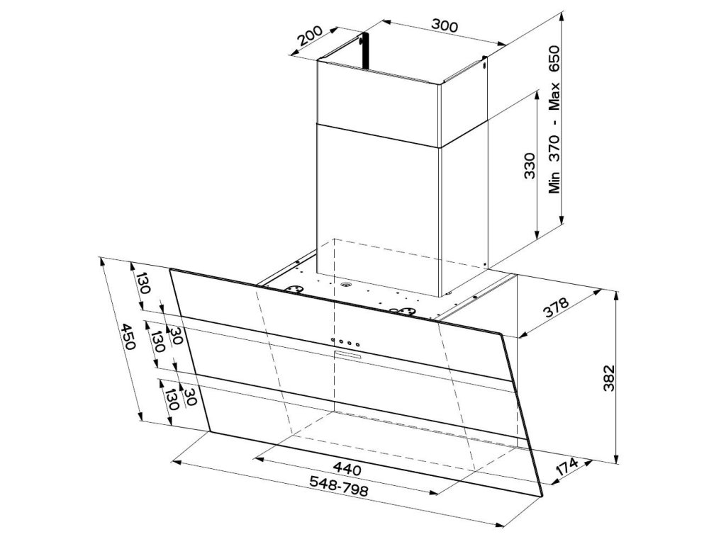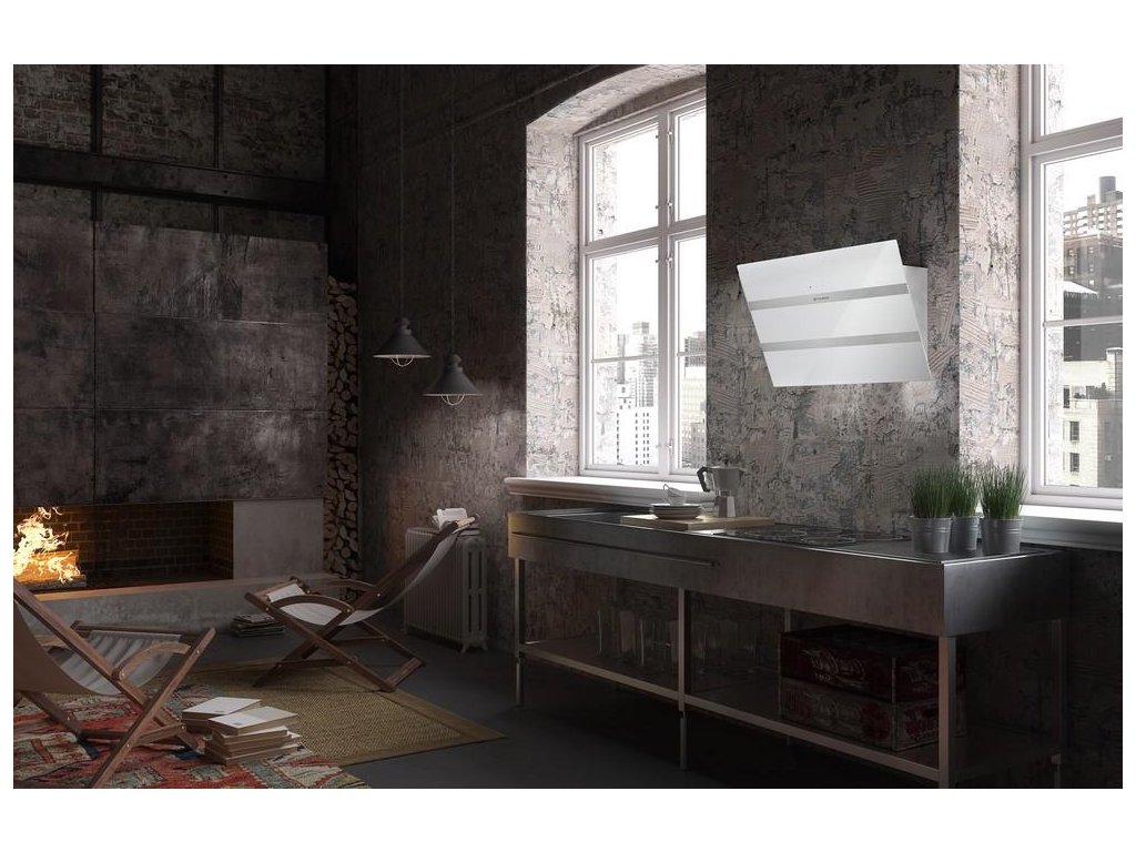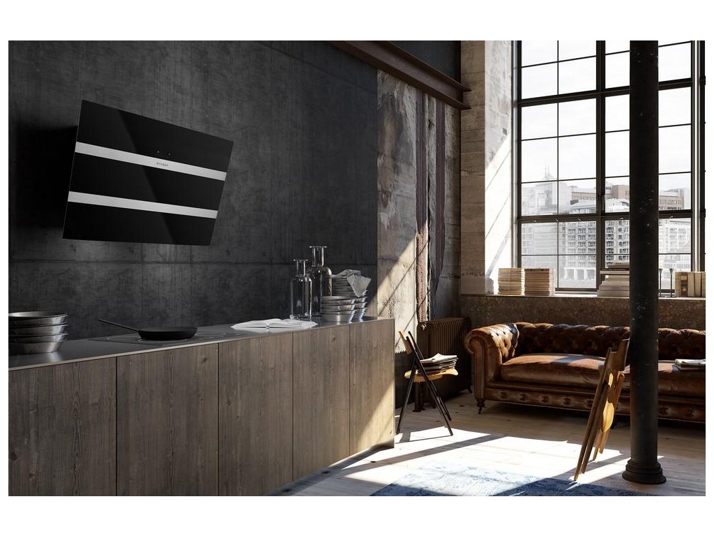 Vertikální panel z černého skla nepřekáží při vaření a je navíc velice snadný na údržbu. V případě většího množství par můžete napomoci jejich sběru otevřením panelu pomocí pístů.