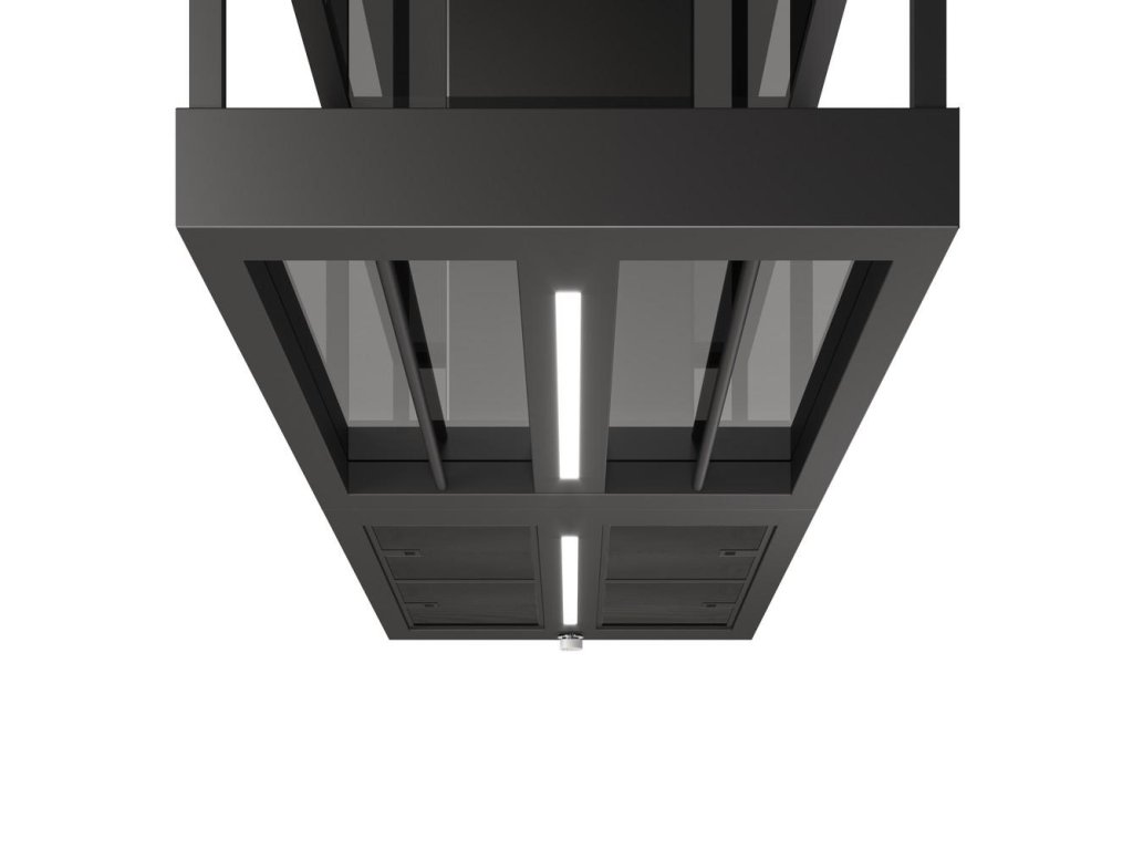 T-Shelf je ikonická ostrůvková digestoř v elegantním industriálním stylu. Díky vzdušné závěsné konstrukci, praktickým policím z kouřového skla a dvěma LED panelům se stmívačem osvětlení se snadno stane centrálním prvkem moderní kuchyně. Elegantní matně černý odstín RAL 9005 se bude hodit do každého interiéru.