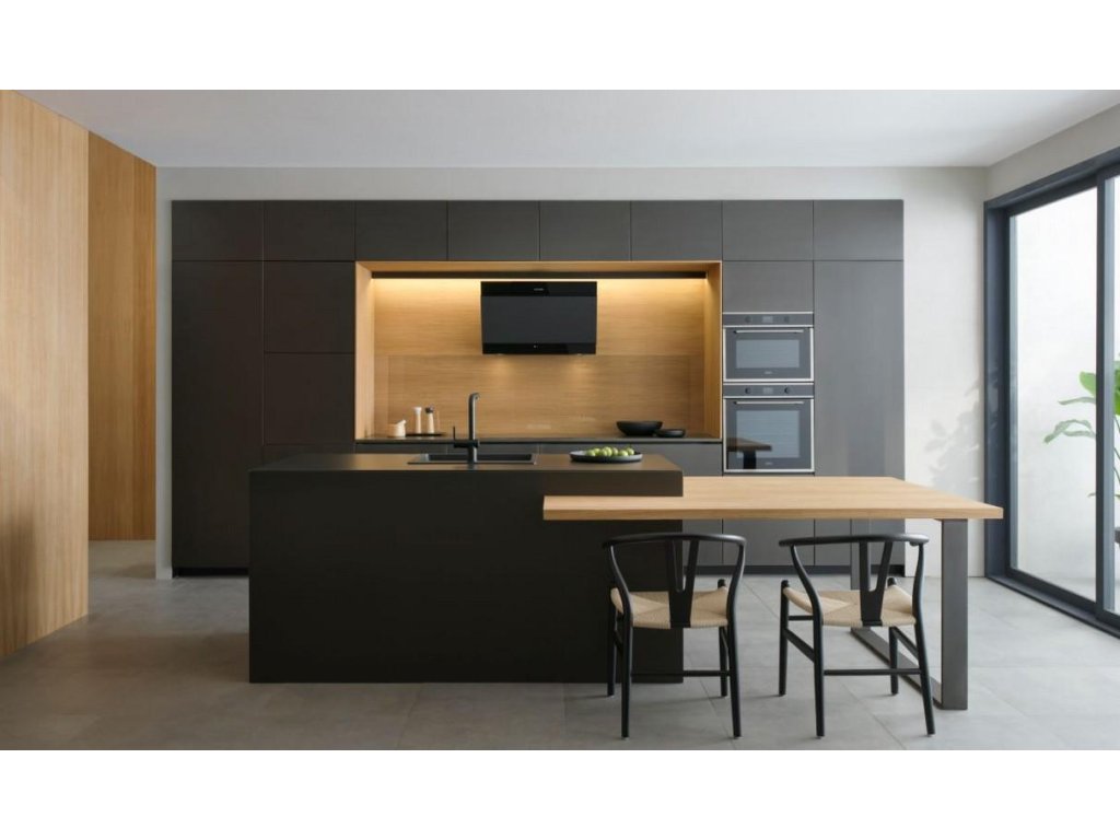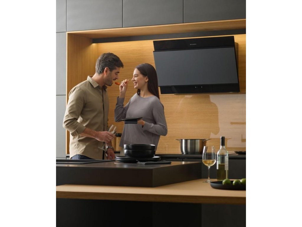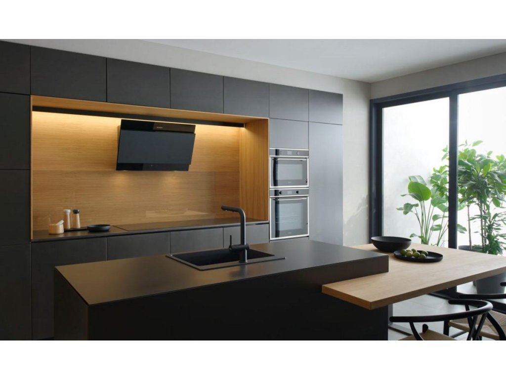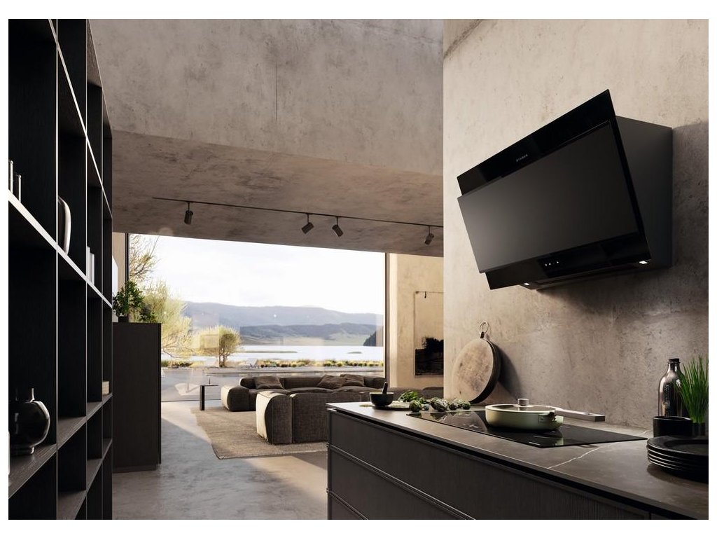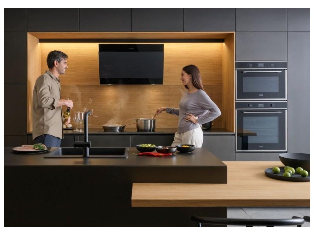 Minimalistické, elegantní, robustní a funkční - nové diagonální nástěnné odsavače par Faber TRUE BLACK odpovídají nejnovějším trendům v interiérovém designu díky svému sofistikovanému celočernému designu, stejně jako díky použití vysoce kvalitního kování (jako jsou panty a motory) a jedinečných estetických detailů.