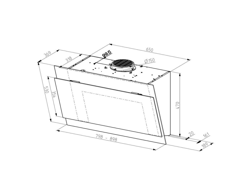 Odsavač lze namontovat tak, aby odváděl páry přímo otvorem v zadní části do odtahového potrubí ve zdi (otočná motorová jednotka). Odsavač par se dodává bez komínu.
