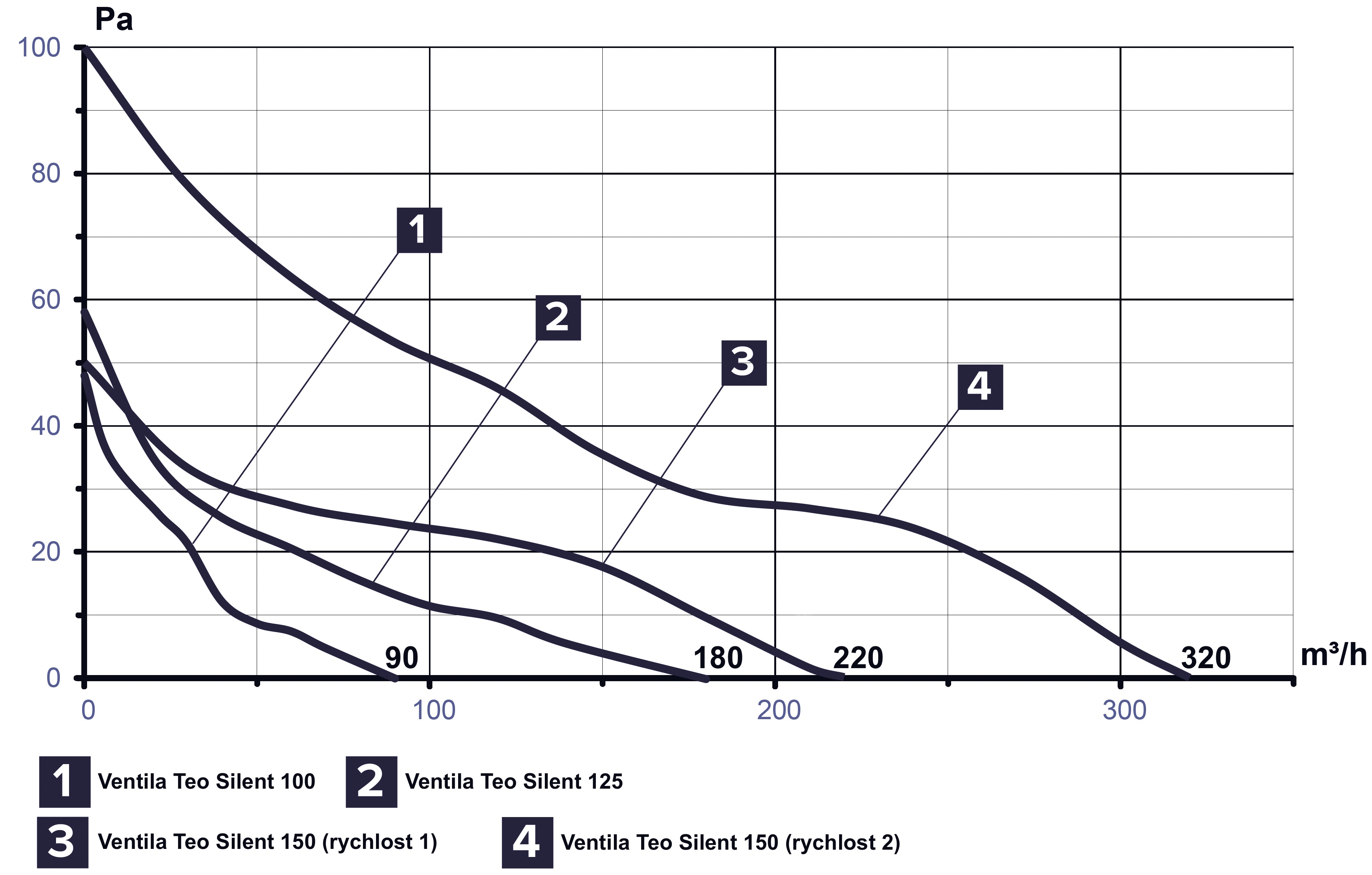 Ventila Teo Silent 100 je kvalitní ventilátor do koupelny určený pro pravidelné i nepřetržité větrání místností se zvýšenou vlhkostí. Díky konstrukci s předním umístěním oběžného kola vytváří vyšší tlak než běžné koupelnové ventilátory, takže si poradí i s delšími nebo částečně zanesenými vzduchovými šachtami. To z něj dělá vhodnou volbu nejen do koupelen a sprch, ale také do technických místností, šaten nebo místností, kde je potřeba rychlé a stabilní odvádění vzduchu.