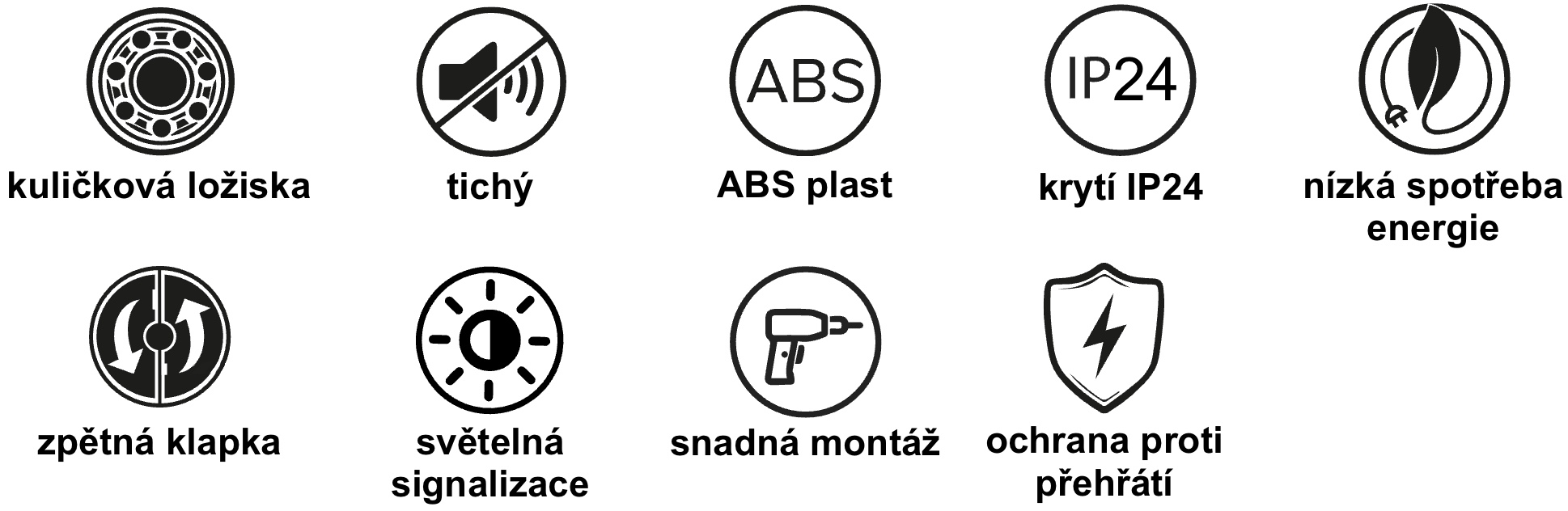Tělo ventilátoru je vyrobeno z kvalitního ABS plastu, který je odolný vůči vlhkosti, teplotním změnám a nežloutne ani po letech používání. design je univerzální a dobře zapadne do většiny moderních koupelen. Provoz ventilátoru je signalizován decentním modrým LED podsvícením.
