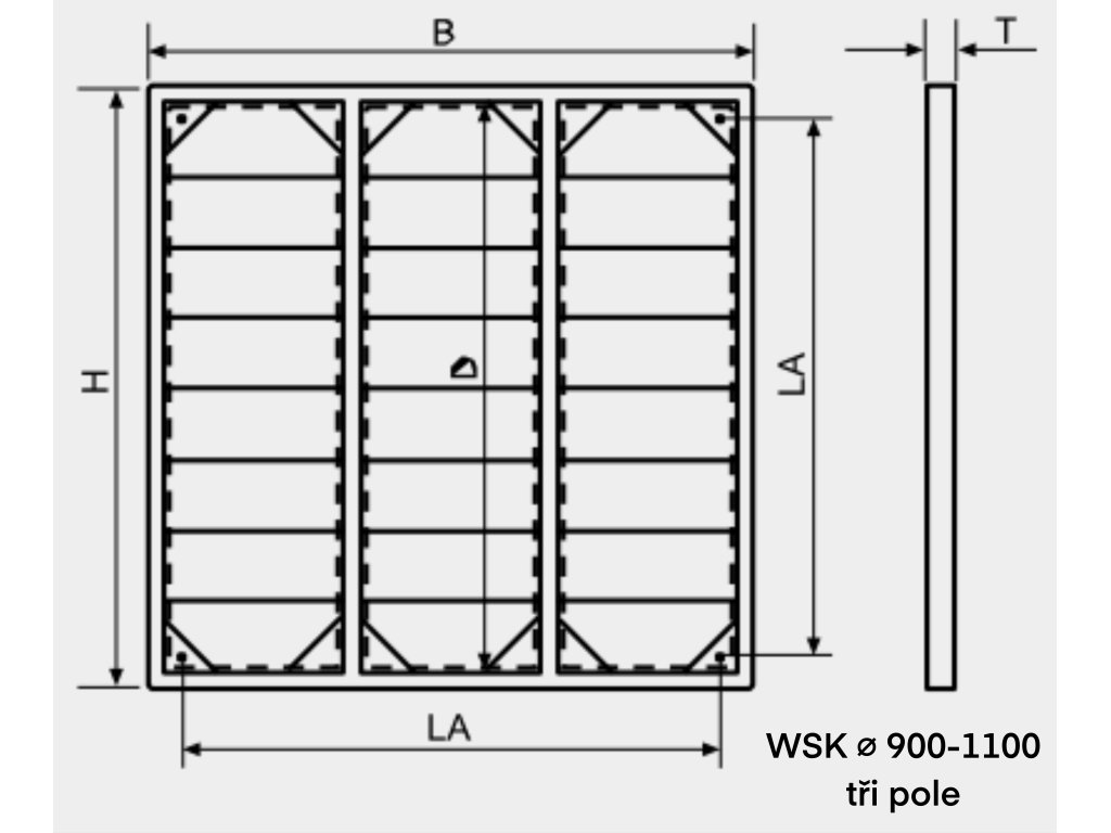- WSK Ø 900 - 1100 tři pole; dodáváno ve třech částech pro vlastní montáž