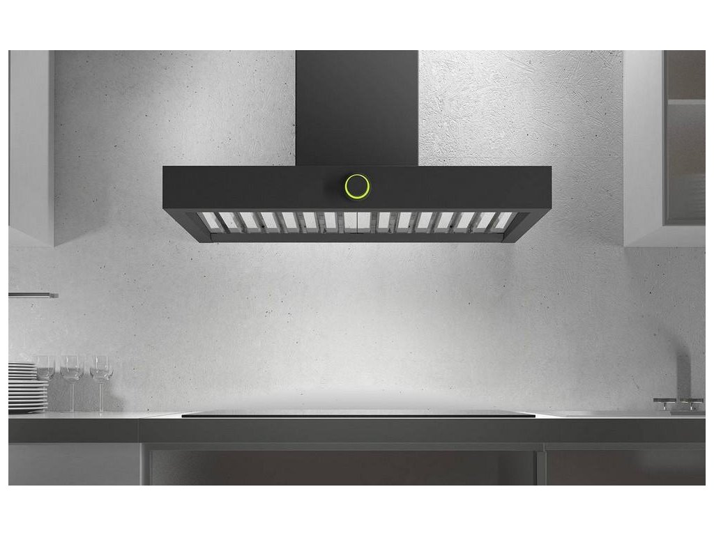 Tělo odsavače par je vyrobeno z černě stříkané oceli. Tvar digestoře nabízí možnost využití horní části jako odkládacího prostoru.
