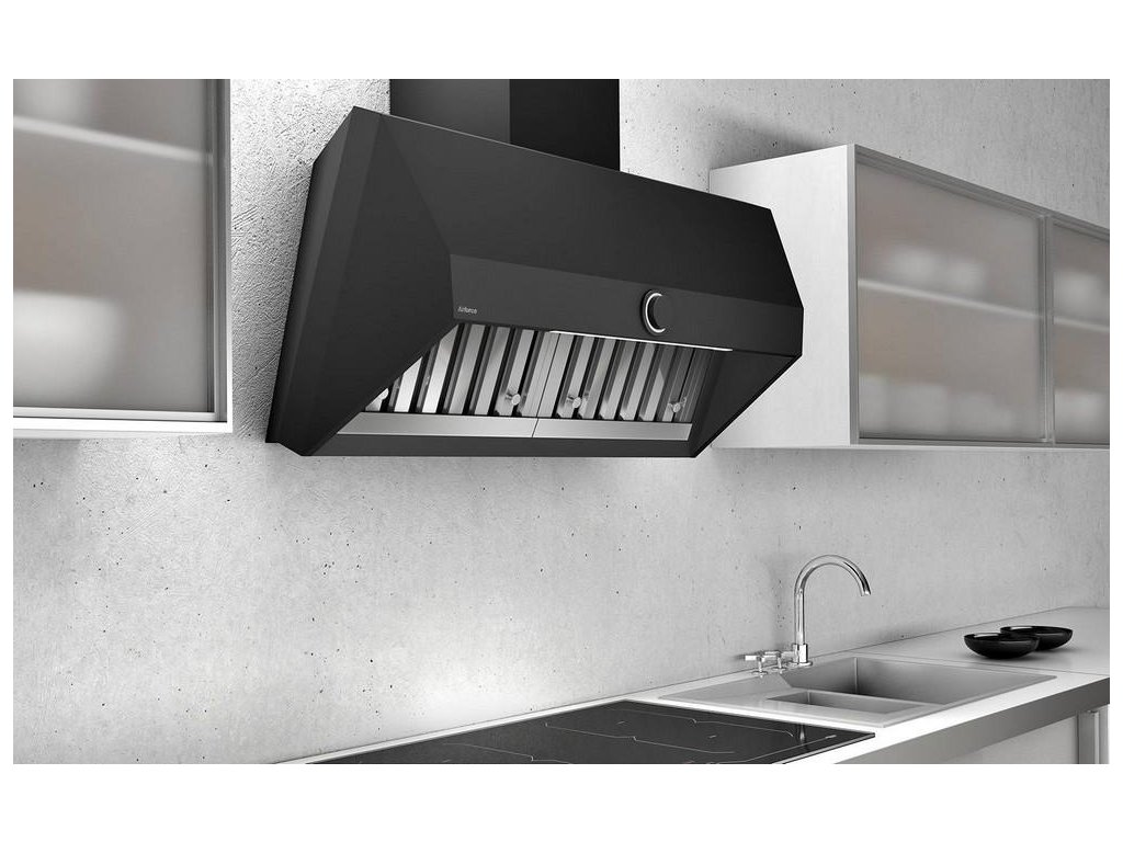 Tělo odsavače par je vyrobeno z matně černě stříkané oceli a nechává vyniknout robustním tukovým baffle filtrům. Tvar a zpracování digestoře nabízí možnost zakomponovat digestoř do industriálních a minimalistických kuchyní, kde bude jedinečným designovým prvkem.