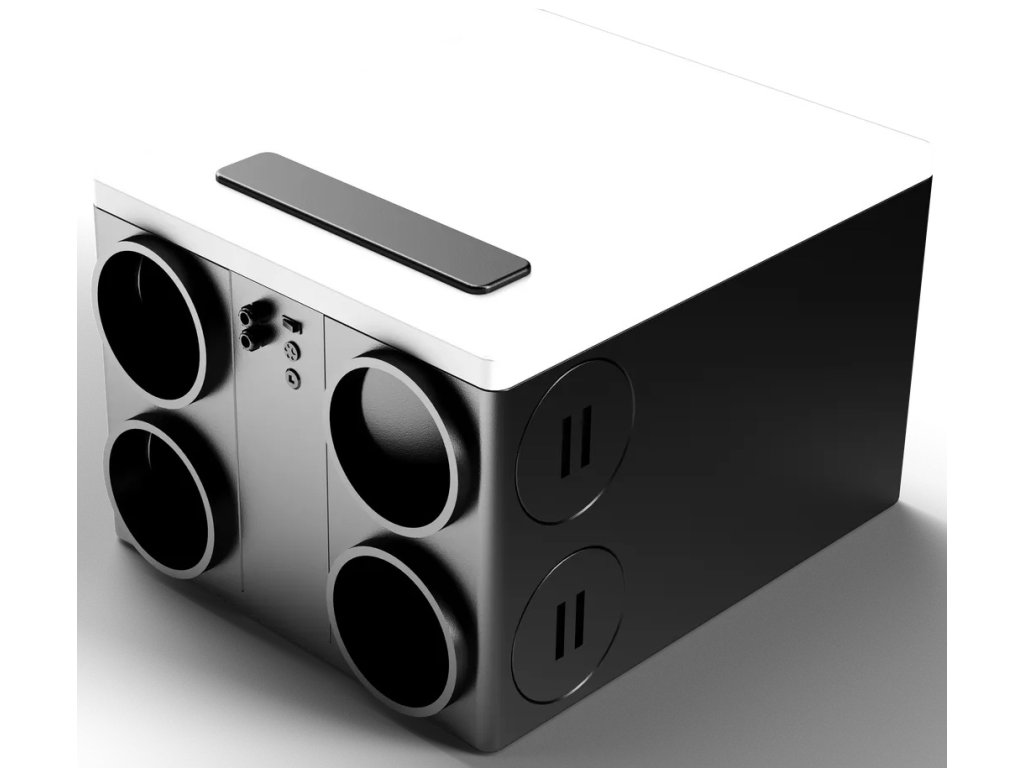 Rekuperace je vybavena úspornými EC ventilátory, mechanickým dvouklapkovým bypassem a integrovanou Wi-Fi regulací. Konstrukce z černého EPP s kovovým krytem zajišťuje nízkou hmotnost (cca 35 kg), výbornou tepelnou izolaci a tichý provoz.